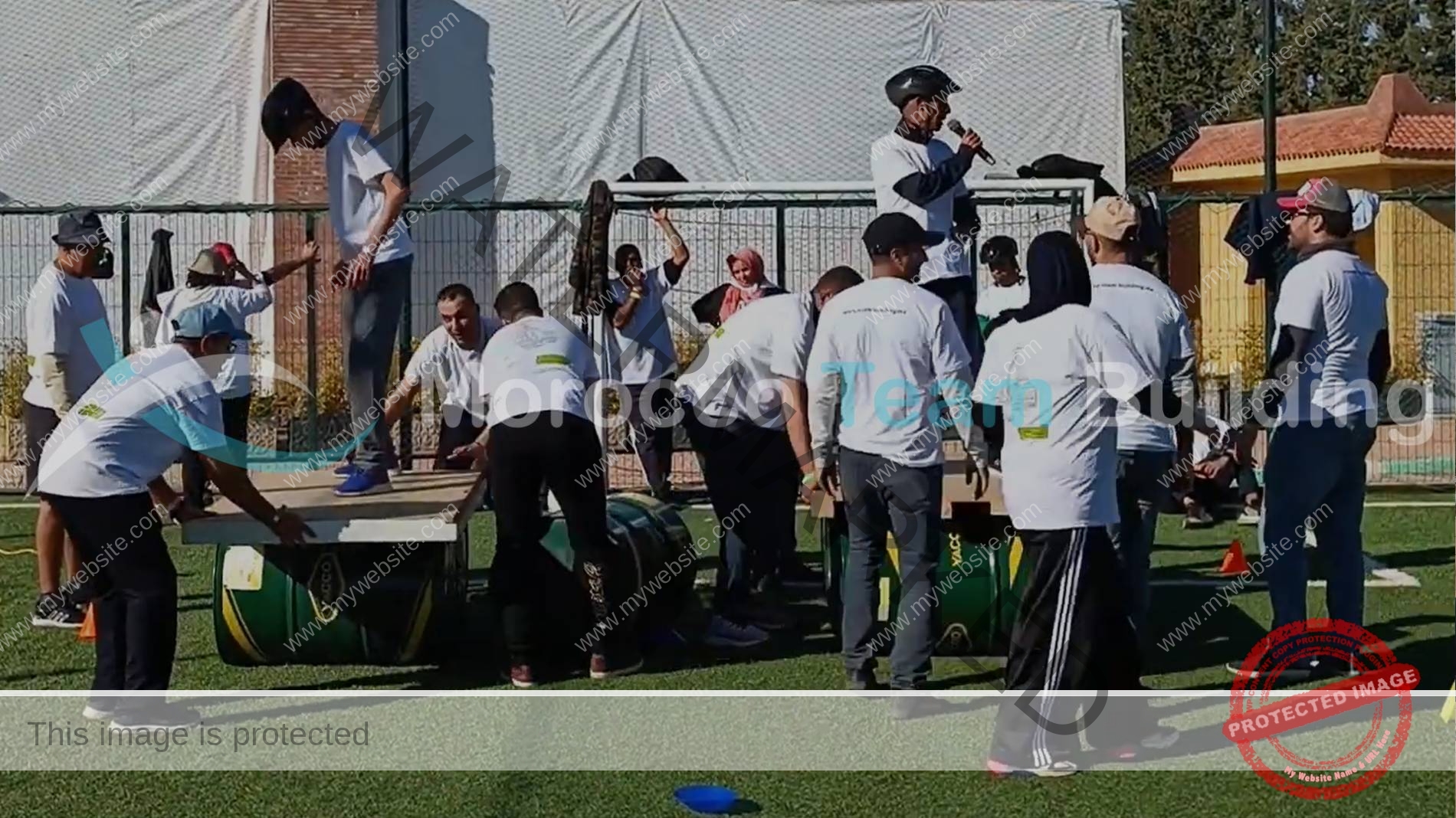 Les participants doivent synchroniser leurs actions pour garder l’équilibre de la planche tout en avançant progressivement.