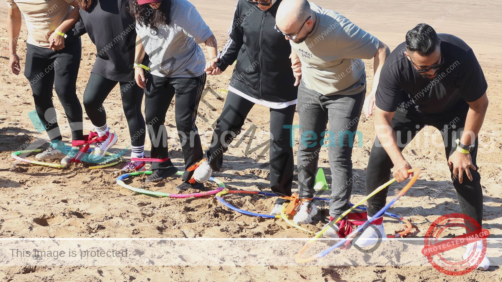 - Parcours à franchir : Les équipes doivent avancer en restant synchronisées sur un circuit défini (avec obstacles ou défis selon le niveau de difficulté).